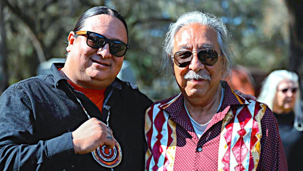 Основатель и генеральный директор NDN Collective Ник Тилсен стоит рядом с Леонардом вскоре после его освобождения из тюрьмы 18.02.2025. Фото: Angel White Eyes.